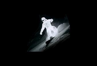 Le photographe Jacob Sutton a recouvert le snowboarder William Hughes de LED et l'a filmé de nuit sur les pistes de Tignes.