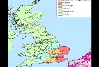 - Le Royaume-Uni signale au 17 février, 52 exploitations à travers 10 comtés, mais, en raison de l'augmentation dans les rapports de SBV identifiés en France, les zones à risque viennent d'être élargies en conformité avec les données de modélisation.