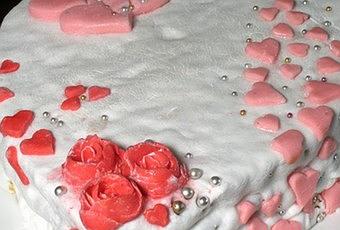 Et voici le gateau que j'ai fais pour cette journee en guise d'amour, mon mari etait ravie et il a bcp aimé ce gateau et je reconnais qu'il etait tres bon,avec un peu d'imagination et le tour est jouer, j'ai fais 2 genoises une au chocolat et une autre a la vanille, jai decoupe la gernoise a la vanille en 2 et je voulais faire la meme chose pour la genoise au chocolat mais elle etait tres fragile donc je l'ai mise entiere . je l'ai fouree a la mousse au fraise, c'ete un pur regale.