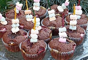 Déposer des caissettes en papier dans des empreintes à muffins, verser 2 cuillères à soupe de préparation, puis déposer quelques marschmallows. Couvrir du reste de préparation.