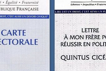 Sortant juste du Dictionnaire de Xavier Darcos mon attention a été attirée par l’émission de France Culture Concordance des temps, au menu : les campagnes électorales dans la Rome antique et un texte bien fait pour retenir l'attention : Lettre à mon frère pour réussir en Politique en VO cela donne : Commentariolum petitionis.