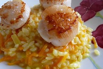RISOTTO POIREAU ET CAROTTES AUX NOIX DE SAINT-JACQUES (pour 3 personnes)