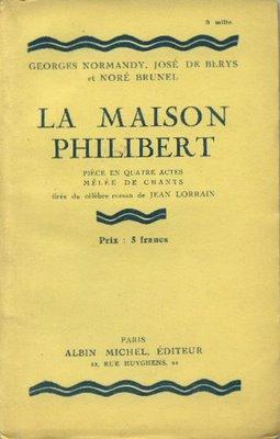 La Maison Philibert, José de Bérys, Noré Brunel et Georges Normandy, d'après le roman de Jean Lorrain, pièce en quatre actes mêlée de chants, représentée en février 1932 au Moulin de la Chanson. Editions Albin Michel.