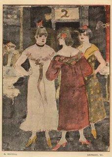 Il aura donc fallu trois auteurs pour adapter ce qui reste l'un des grands roman de Jean Lorrain, un roman patchwork, avec ses différents niveaux de langage, sa narration non linéaire, construit comme un puzzle où s'imbriquent comme des pièces indépendantes contes, souvenirs, chroniques, avec des narrateurs différents, qui forment enfin un tableau précieux des moeurs des "classes dangeureuses" et de la prostitution au début du siècle.Une surprise pourtant m'attendait à la lecture de la liste des personnages et acteurs. Le rôle de la Goualeuse qui intervient au troisième acte pour le Bal des Vaches, était tenu par Fréhel, monument de la chanson réaliste, archétype de la chanteuse du pavé de Paris, elle est accompagnée par l'accordéoniste aveugle, René de Buxeuil (auteur de nombreuses chansons). On ne sait pas qu'elle était la teneur de l'intervention de la chanteuse, voici le passage (acte III scène V) où apparait la Goualeuse :