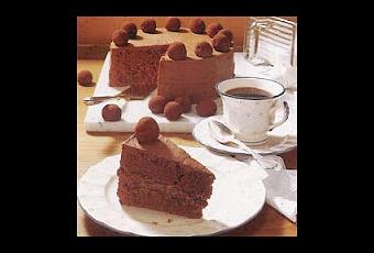 - Faire chauffer le sucre glace et le chocolat avec 4 cuillerées d'eau au bain-marie. Lorsque le mélange est lisse, en enduire le gâteau. Garnir des truffes et mettre au frais 2 h avant de servir.