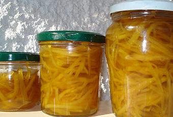 Après l'avoir réalisée à plusieurs reprises telle qu'indiquée dans le livre, j'ai décidé d'y faire quelques modifications à ma convenance. Ne plus faire des morceaux, mais de très fines lamelles... ne plus blanchir 4 (6?) fois, mais seulement deux... et puis surtout préparer mon gingembre au sirop, au lieu de le sécher après l'avoir confit.