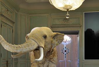 Huang Yong Ping, Ombre blanche, peaux de buffles, structure en acier et résine, 2002