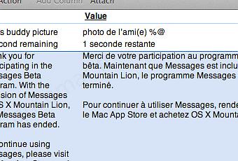 « Merci de votre participation au programme Messages bêta. Maintenant que Messages est inclus dans OS X Mountain Lion, le programme Messages Bêta est terminé. », suivi de « Pour continuer à utiliser Messages, rendez-vous sur le Mac App Store et achetez OS X Mountain Lion.»