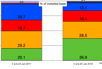 L’an dernier à la même période, le système d’exploitation de Google représentait 20,1% de parts de marché, cette croissance s’est réalisée au détriment de Symbian qui continue sa perte de vitesse même si ses 26,7% le place en troisième position, derrière iOS avec 29,2%.