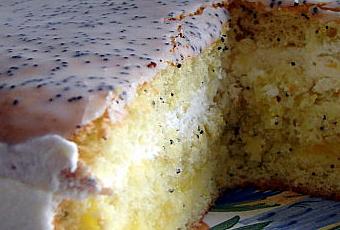 Étaler la crème au citron sur le premier étage de la génoise, puis la chantilly sur le second étage. Faire un glaçage sur le dessus du gâteau avec du sucre glace, du jus de citron et une cuillère de graines de pavot. S'il reste de la chantilly l'utiliser pour les côté du gâteau.