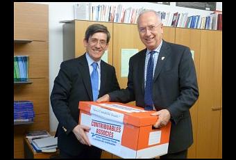 Charles de Courson, député de la Marne et vice-président de la Commission des Finances, a reçu le 15 février les représentants de Contribuables Associés, Alain Mathieu, président, et Coralie Bertrand, qui ont mis à sa disposition les 13 240 pétitions signées par des membres de Contribuables Associés.