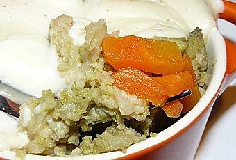 Mettre les légumes dans des petites cocottes et répartir sur le dessus la béchamel.