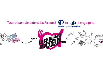 Du 21 au 26 mars dans les magasins CARREFOUR MARKET : 4 produits achetés parmi les marques en promotion Danone, Blédina, Volvic et Badoit c´est 1 repas offert pour les Restaus du Coeur.