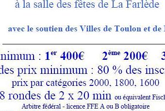 ...le 18 mars avec, semble-t-il, une cadence à incrément équivalente à 20m KO ; ici 15m + 5sec/coup. Je trouve que c'est une bonne initiative et que cette cadence devrait se répandre en rapide.
