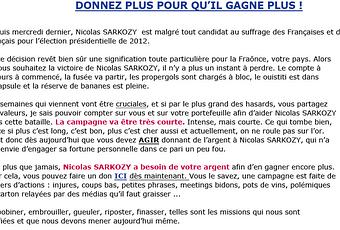 Alors que la presse frémissait encore d’une déclaration de candidature particulièrement banale, les serveurs mails de l’UMP chauffaient à fond pour faire partir les milliers de courriers électroniques destinés à tous les Français qui portent ce parti dans leur cœur. Et notamment, ce furent les Français expatriés qui eurent le plaisir de recevoir les bons mots du secrétaire général du Parti Socialistoïde de Droite.