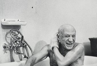 Pablo Picasso dans son bain le premier jour de sa rencontre avec DDD, Cannes, La Californie, 8 février 1956