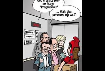 Visitons maintenant l’étage des programmes. Il est déjà moins bien fourni, et c’est facile à comprendre. D’une part, les programmes ne retiennent guère l’attention des électeurs puisqu’ils savent qu’ils ne seront jamais appliqués. D’autre part, les programmes ont beaucoup de choses en commun. Je me répète : la finance, les délocalisations, le chômage des jeunes, les profits des actionnaires, les paradis fiscaux : voilà les ennemis. Les candidats ont été, demeurent, et demeureront des ignorants en matière d’économie, hostiles ou sceptiques à l’égard du capitalisme marchand, et partisans de l’économie dirigée. La seule nuance concerne le degré de dirigisme : total chez les uns, important chez les autres. Nulle part il n’est projeté de rompre avec le dirigisme, qui est pourtant la cause première et unique de la crise actuelle. Mais, comme dans les années 1930 on préfère y voir une crise de l’économie libre. On a donc le choix entre Roosevelt et Léon Blum. Personne n’oserait se réclamer de Erhard, Reagan et Thatcher.