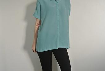 Chemise menthe à l’eau Zara - Slim Topshop – Chaussures Urban Outfitters - Bague House Of Harlow – Lipgloss Chanel n°73