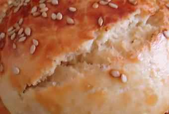 Dégazer la pâte en la pétrissant légèrement puis préparer des boulettes selon la grosseur désirée. Les aplatir légèrement et les laisser lever une deuxième fois pendant 1h. Quand les krachels ont bien levé, les enduire de l'œuf battu.Les saupoudrer de graines de sésame.