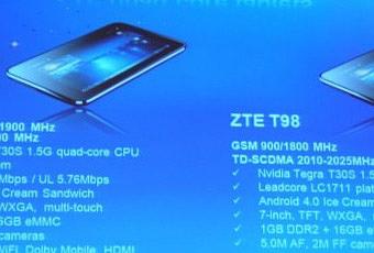 A coté du ZTE Era, figure la tablette PF100 proposée par ZTE. Elle est également motorisée par un nVidia Tegra 3 qui lui est cadencé à 1,5 GHz. Doté de 3G HSPA+, elle est capable te téléchargement jusque 28 Mbps (selon de réseau bien entendu). L’écran mesure 10,1 pouces avec une résolution WXGA.