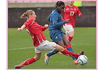 Et bah, pour un bon début, c'est un bon début ! La France a joué aujourd'hui son premier match du tournoi de Chypre contre la Suisse...et l'a remporté haut la main 3 à 0. Bon, comme je n'ai pas suivi le match, je vais me contenter de vous redire ce qu'il y a écrit là et là : les buts sont signés Délie (5'), Thiney (17')(qui avait le brassard de capitaine !) et Bompastor (38') sur pénalty. Ce fut aussi l'occasion d'une première sélection pour Marina Makanza, qui, dixit Footoféminin, s'est "faite remarquer".