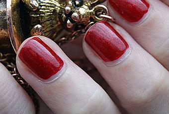 Un rouge à la fois vif et profond, chargé d'un millier de fines paillettes. De toute beauté!