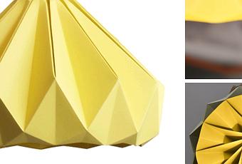 On adore ce luminaire origami en papier Chestnut conçu par le Studio Snowpuppe (NL). Apportant une lumière douce et agréable, cette suspension convient aux chambres d’enfants comme unique source d’éclairage. Disponible en 8 couleurs différentes dont 3 nuances de jaune, yeah !! : marron carton, vert automne, jaune automne, jaune or, jaune canari, blanc, rose, gris.