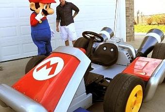 Une bien belle récompense puisqu’une personne déguisée en Mario est venue sonner à la porte du chanceux Nathaniel pour lui livrer le véritable kart de Mario.