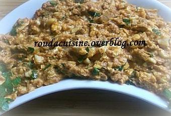 Préparation: Faire fondre le beurre dans une poêle. Casser les oeufs, rajouter le fromage et dès que le blanc commence à prendre, remuer constamment à l'aide d'une spatule pour obtenir une brouillade. Rajouter le thon, le cumin et la harissa. Mélanger vivement le tout, retirer du feu, parsemer de persil ciselé et c'est tout!