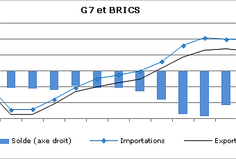G7 et BRICS - Commerce de Marchandises en milliards de US$ (données douanières) - Données corrigées de variations saisonnières à prix et taux de change courants