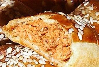 badigeonner de jaune d'oeufs , parsemer de grains de sésames et enfourner pour 15 a 20mn.