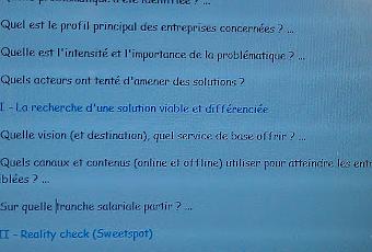 La seconde phase est basée sur des interactions, des feedbacks et n'est pas figée. Celle intitulée "Reality Check" passe au crible les trois éléments du sweetpot "Aptitudes/Enthousiasme (en phase avec des aspirations, des valeurs et une préférence)/Revenus", et vient ré-alimenter la seconde partie.