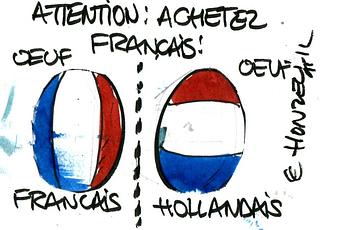 Gobez Français ! Grande nouvelle, mais mesure incomplète : il faudrait veiller à ce que les poules pondeuses soient elles-mêmes françaises. On ne sait en effet jusqu’où peut aller la concurrence déloyale des Espagnols : ne peuvent-ils faire franchir la frontière à des camions porteurs de poules pondeuses ? Parallèlement, on apprend que les galettes bretonnes vont bénéficier d’une IGP (Indication géographique de production). À Marseille, on va peut-être labelliser les sardines capables de boucher le port (sous contrôle de la CGT).