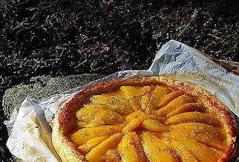 Tarte à la mangue au citron vert Recette toute simple et légère , facile et délicieuse Recette pour : 6 pers Préparation : pour moi 5 mn Cuisson : 20 mn à 200 ° Il faut : 1 pâte feuilletée de bonne qualité 30 g de cassonade 2 mangues bien mûres " remplacées par 500 g de mangue au sirop " 1 citron vert Préparation : Etaler la pâte en la laissant sur la feuille de papier sulfurisée Saupoudrer la pâte de sucre cassonade puis disposer sur le sucre les tranches de mangue en rosace Zester le citron et en presser le jus Saupoudrer les mangue de zeste de citron et arroser le tout de jus " je n'ai mis que la moitié du jus " Enfourner four préchauffé à 200 ° pour une cuisson de 20 mn " env" Cette tarte est délicieuse encore tiède Agréable car très légère , le citron et la mangue associés offre une association agréable et vraiment délicieuse