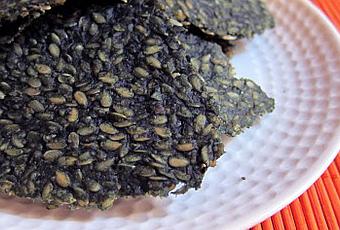 Faire tremper une vingtaine de minute les graines de lin dans 1 tasse d'eau, puis y ajouter la poudre de noix, la spiruline et le sel.Bien mélanger et étendre sur un plateau du déshydrateur pour 6 heures environ puis retourner et retirer la feuille de paraflex. Laisser alors sécher pendant 18 à 20 heures.Ce sont de fines bouchées croustillantes.A picorer plus qu'à tartiner !