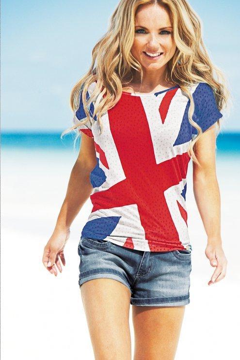 Salut les filles! Aujourd'hui, un petit visuel de la collection d'une ex-spice girls! La chanteuse Geri Halliwell promotionne ses créations pour cet été 2012! La collection propose le motif Union Jack sous différents formats. Cette collection sera destinée à toutes les femmes et s'étendra de la taille 34 au 50.