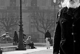 « Bégayer le temps ou Le dernier invité de Gertrude Stein » : ce qu’il y a de chic avec la photo de rue, c’est qu’elle finit forcément par prendre du caractère avec le temps. Ici pas besoin attendre : à mon sens, ce monsieur semble sortir tout droit de la grande époque où Hemingway et Scott Fitzgerald traquaient l’ennui, l’ivresse et l’inspiration à Paname. Et derrière lui, ce sont les modernes promeneurs et joggeurs des Tuileries qui font tache.