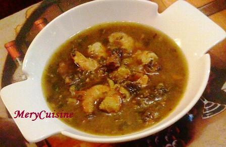 Rendement : 5 à 6 portionsPréparation : 15 mnCuisson : 40 mnIngrédients250 g de veau taillé en petits cubes250 de crevettes décortiquées1 belle botte de cresson hachée grossièrement2 oignons hachés1 gros morceau de gingembre râpé3 badianes (anis étoilés)2 c à s de sauce soya2 c à s de vinaigre de riz2 c à c de pâte de crevette1 l d’eau bouillanteHuile de tournesol ou d'arachideSel et poivre du moulinMéthodeChauffer un filet d’huile dans un faitout, y faire revenir les cubes de veau avec l’oignon et le gingembre pendant quelques minutes. Ajouter sel, poivre, badiane et pâte de crevette. Mouiller avec l’eau bouillante et porter à ébullition. Couvrir, baisser le feu à moyen et laisser cuire pendant 20 minutes.