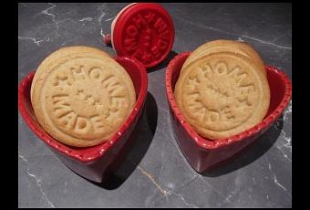 un rouleau à pâtisserie – un tampon à biscuit – une silpat – une balance – papier film