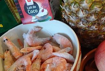 Crevettes à l'ananas et aux pommes sauce lait de coco