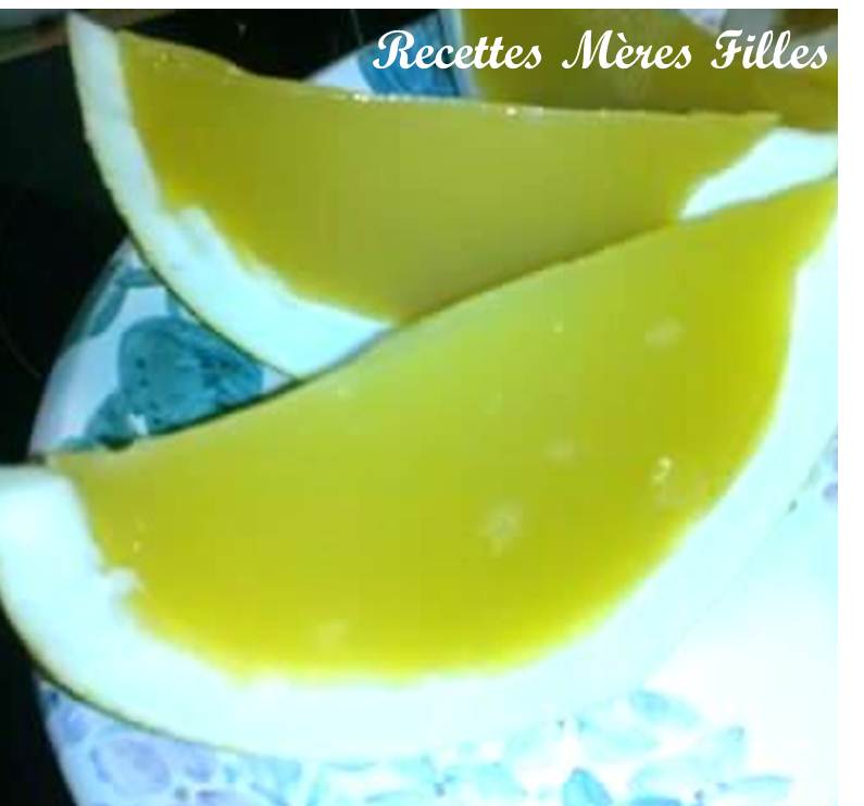 C’est cette quantité de liquide que vous devez obtenir ; au besoin, pressez un dernier fruit dont vous ne conserverez pas la peau. Au final, vous devez avoir entre 1/2l et 6 dl de jus.Dans un poêlon, versez le jus ; ajoutez-y le sachet de kanten (4g), et portez à ébullition 2 minutes. Stoppez le feu et ajoutez le sucre.