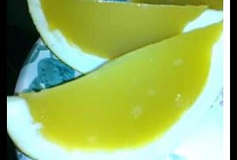 Remplissez chaque moitié d’eau et versez cette eau dans un bol gradué afin de connaître l’exacte quantité de liquide que peut contenir les fruits.