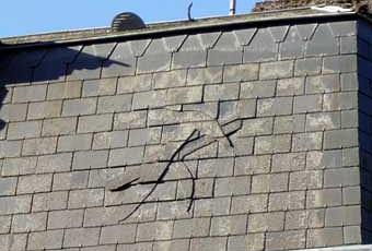Il faut lever les yeux, comme l'a fait Lionel Royer, pour remarquer l'emblème des couvreurs sur le pan d'une toiture à Vendôme (Loir-et-Cher). L'habitation est située à l'angle de la rue et de la cour de l'Abbaye.