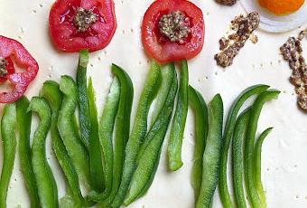 Cherchez l'intrus(future tarte salée épinards & chèvre ; photo non contractuelle)J'ai 5 ans.Je cuisine très peu. Et quand ça m'arrive, je joue avec les ingrédients. La recette prend facilement une heure au lieu du petit quart d'heure nécessaire. Car je plante des tiges de poivron vert. Y fleurissent des rondelles de tomates. Je prends en photo mes coquelicots de mars. Et les poste sur internet. J'ai l'humeur bucolique.