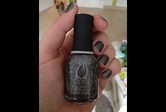 Revenons à nos moutons avec rock solid d’Orly qui est un gris anthracite foncé avec quelques micro paillettes argentées mais aussi et surtout des micro paillettes holographiques.