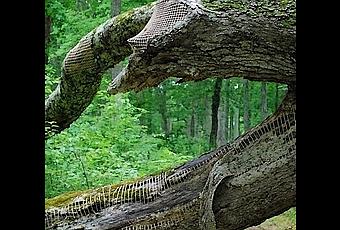 sur les arbres blessés ou points de suture sur les rochers, des