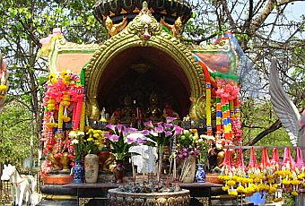 Débutés il y a plusieurs mois, les travaux de construction du mausolée Phra Tamnak sont terminés. C’est sur l’ancien emplacement qu’a été construit le nouveau sanctuaire. L’inauguration en a été faite le 5 mars 2012. Ne pouvant m’y rendre, je n’ai pas pu assister à cette cérémonie mais voici les photos prises la veille.