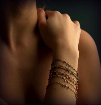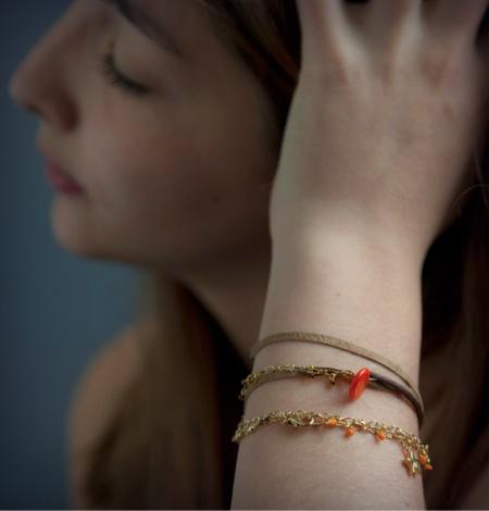 Bracelets, boucles d'oreilles ou bijoux de cheveux sont dorés à l’or fin et sertis de perles de verre. Dans une palette infinie de couleurs, ces bijoux allient simplicité, légèreté et sensualité. J'aime leur finesse et je craque pour leur élégance.