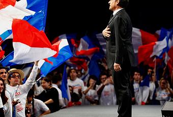 Main sur le cœur, Nicolas Sarkozy entonne la Marseillaise devant quelque 8000 sympathisants UMP. À Bordeaux, le président-candidat a profité de son meeting pour reprendre des thématiques qui lui sont chères : la justice et l’immigration. Tout en défendant une vision de la «République forte», qui fait respecter l’autorité de la loi, sanctionne les délinquants et préserve l’identité nationale ; Nicolas Sarkozy a poursuivit en stigmatisant les différentes positions du parti socialiste, sans le nommer, et l’a accusé de s’être allié aux indépendantistes basques qui avaient chahuté sa venue à Bayonne. " border="0" />