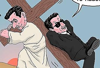 Non, il n'aura pas à porter sa croix jusqu'au Mont de Golgotha ! Son calvaire s'arrêtera le 6 mai au Palais de l'Elysée. Ce n'est pas une crucifiction qu'il attend là bas, mais bel et bien une victoire. Pour y parvenir, il est contraint de trainer une croix qui s'alourdit de jour en jour sous le poids d'un passé qu'il n'arrive pas à effacer. Nous l'avons vu faire pénitence, c'était de l'auto flagellation en direct sur France 2 avec des méa culpa à ne plus en finir. Ses regrets étaient immenses mais il était excusable, car au début de son mandat, il n'avait pas encore atteint l'âge de raison, celui qui nous montre le chemin à suivre lorsqu'on arrive aux plus hautes responsabilités. Nous pourrions dire que ce sont là des erreurs de jeunesse. Pour ne rien arranger, son couple était alors en train d'exploser. Heureusement qu'il trouvera quelques 8 mois après sa séparation, un réconfort bien mérité auprès de Carla. Aujourd'hui, le voilà persécuté par de multiples tortionnaires. Son principal rival est le plus ignoble de tous, il n'hésite pas à le trainer plus bas que terre et pourtant notre noble Président n'a jamais eu une parole déplacée à son encontre. Jamais il se serait permis de le traiter de mou, de candidat sans projet. Les "capitaine de pédalo", "flamby", "babar", et on en passe, ça ne vient pas de lui, mais de quelques éléments non maîtrisés au sein de l'UMP.